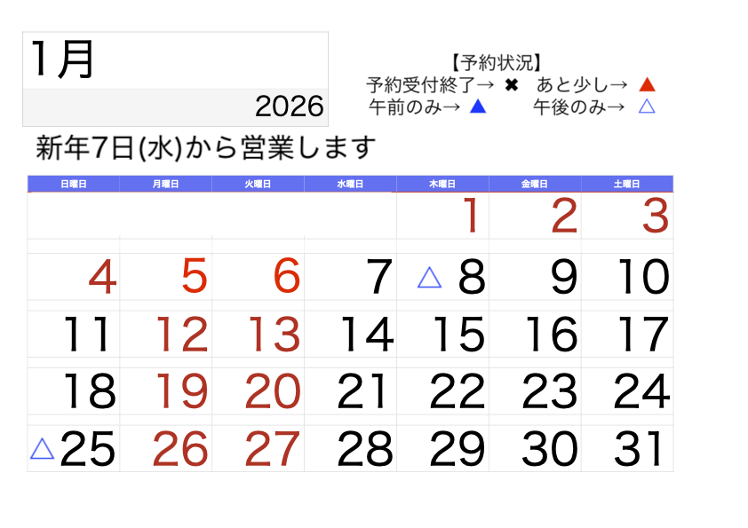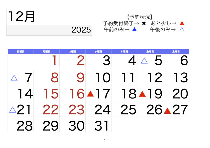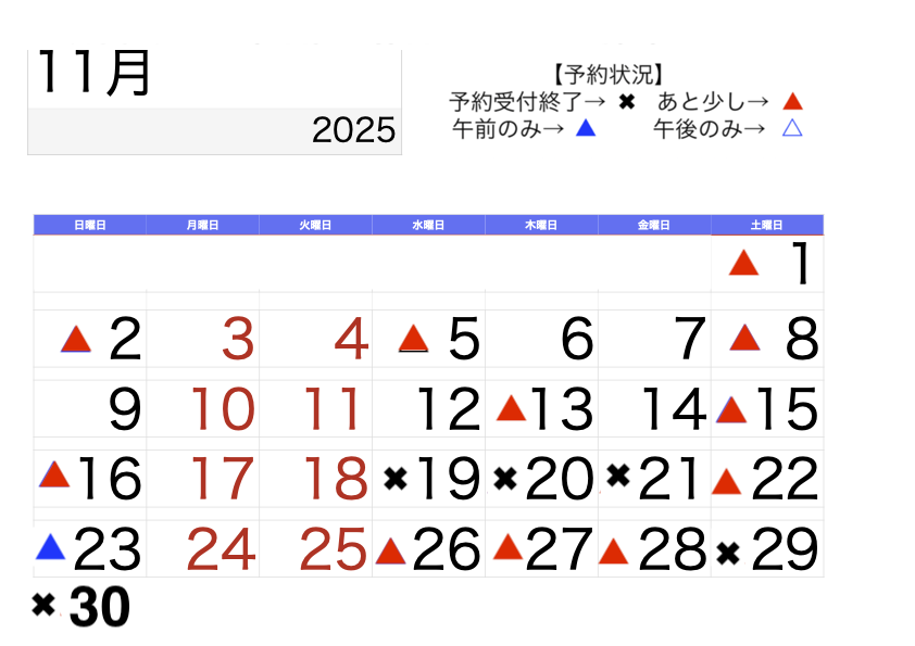 希望日、希望時間の予約が取りにくくなる可能性がありますので、早めのご予約をお願いします。